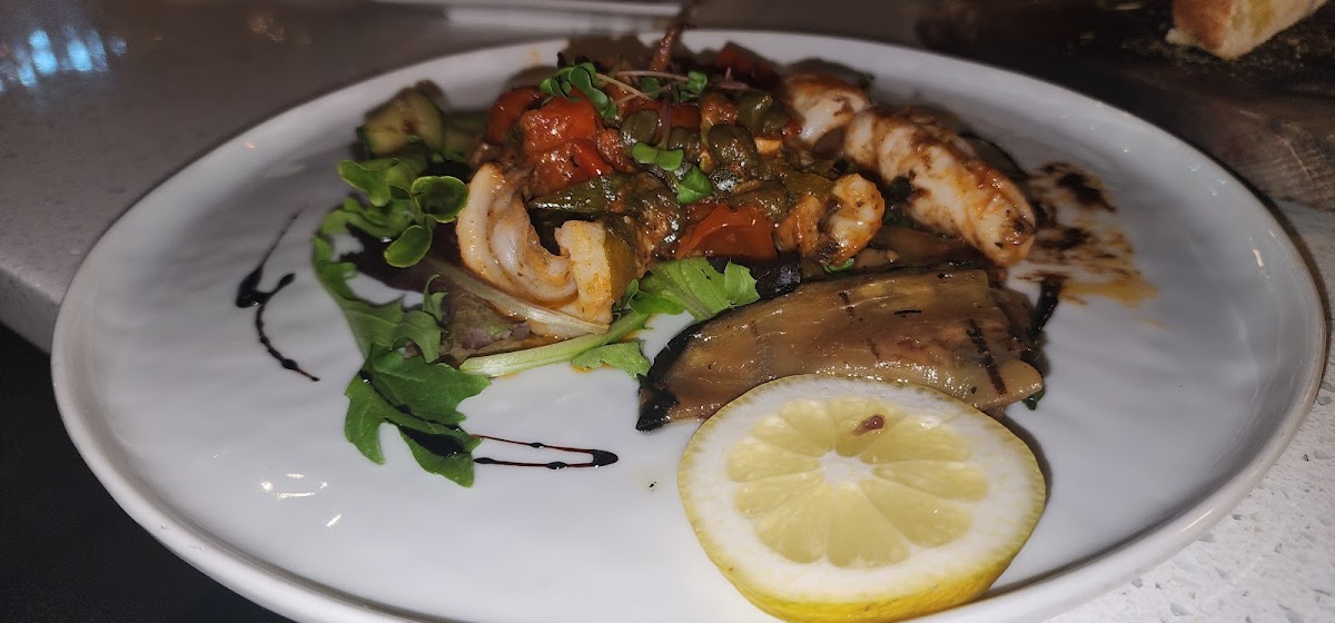 Great! Great! Great! My only disappointment was that I waited so long to try this place. Great vibe, live music, wonderful friendly service, and most importantly the food was delicious. The Pinsa Flatbread/Pizza was really impressive, as was my seafood pasta.