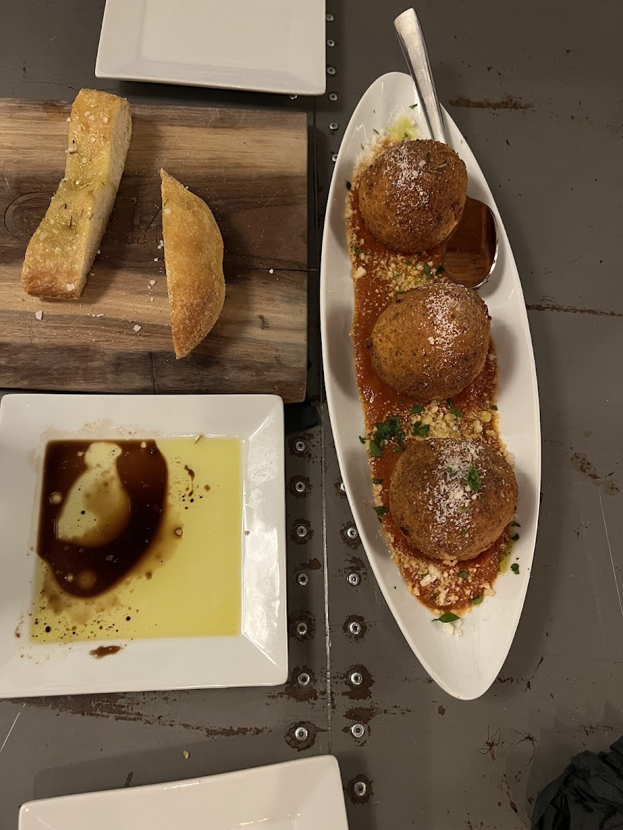 I was very delighted with my experience at this restaurant. We went for a girls night before Christmas and we all were impressed with our experience. They gave bread with balsamic/oil at the table which is something I haven’t seen in a while at a restaurant and is something I always appreciate having while waiting for our food. We all got apps to share, which was the Shrimp, fried carbonara and the aranchini balls and they were all so delicious. For our meals I personally got the pepper gnocchi which was rich & creamy. The others got a flatbread pizza & the shrimp linguine. The shrimp linguine was delicious and quite lemony, but in a good way. The waiter & staff were very attentive to our table, we never had an empty glass. We really enjoyed our waiter, he was very knowledgeable of the menu. Overall the atmosphere was dimmed lighting and cozy. Although I did feel like I was shouting to have a conversation which I would say is the only negative experience at this dinner. I am excited to return